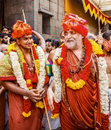 His Holiness was initiated into the revered Guru Parampara of Sri Kanchi Kamakoti Peetham on April 30th, 2025 at Kanchipuram. A profound vedic scholar with deep grounding in vedic culture, He embodies humility, discipline, and quiet spiritual strength. The 71st Acharya is currently performing daily poojas, Vedic rituals, and studying the Shastras under the direct guidance of the 70th Acharya, Jagadguru Sri Sankara Vijayendra Saraswati Shankaracharya Swamiji. With a life dedicated wholly to Dharma, He represents the continuity of Adi Shankaracharya’s Guru Parampara tradition and the promise of its future.